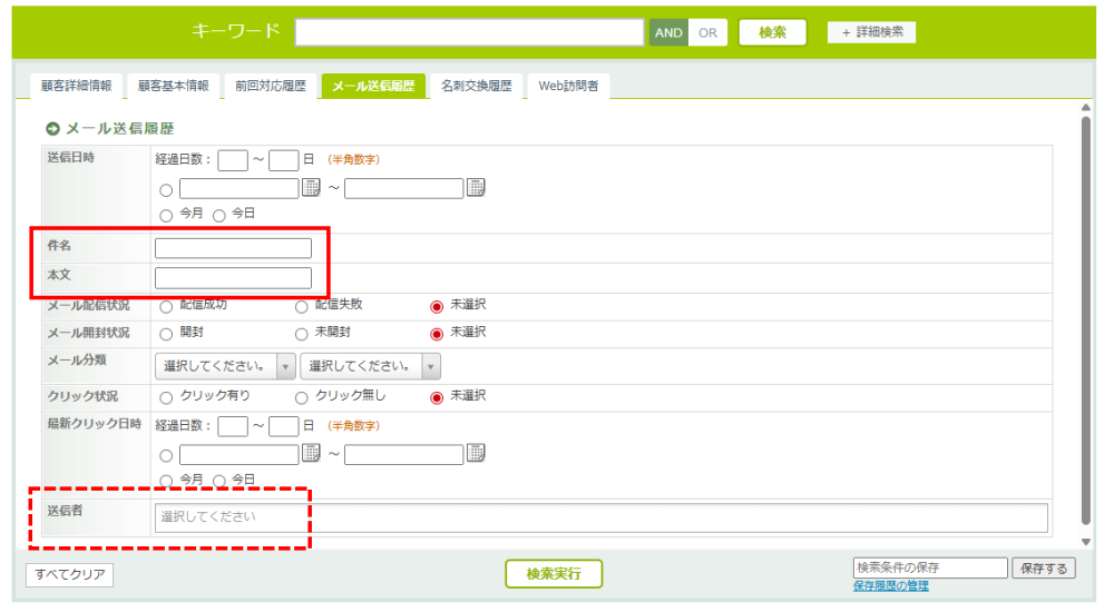 Lead 2025/09/11 シナリオで送信されるメールは検索できる? サスケの仕様について、困ったとき サスケLeadでは、検索条件に該当・ヒットする顧客に対してメールを送れる「シナリオ」機能がございます。サスケLeadのアップデート【検索条件のシナリオ機能】|サスケ活用講座シナリオでメールを送付すると、すべて左メニュー「個別メール送信履歴」に保存される仕様となります。そのため、シナリオで送信されたメールを探したい際はこちらを活用いただけますと幸いです。 なお、ユーザが個々人で個別に送付したメールか否かの検索する仕組みがないため「件名」や「本文」などで検索くださいませ。また「送信者」は『シナリオを作成したユーザ』となります。 関連サスケLeadのアップデート【「個別メール送信履歴」の検索機能】|サスケ活用講座
