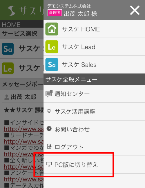 サスケのアップデート【PC版からモバイル版へ戻る機能】