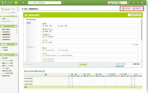 集計の条件設定をする「CSV出力」「印刷する」ボタン消えてしまう…