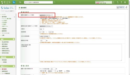 「サスケSalesへ送る」にて新規登録がないときは